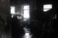 К моменту прибытия расчетов в гаражном боксе полыхали три легковушки. Огонь полностью потушили около 12:45, никто из людей в этом ЧП не пострадал. Кроме автомобилей, поврежден баннер «Выгодное страхование» на фасаде дома.