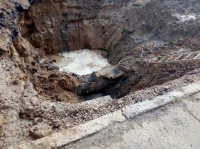 Ситуация утяжелялась тем, что трубы водопровода расположены на глубине 6-7 м. И параллельно с починкой трубы рабочие уплотняли грунт, поскольку под дорожным покрытием образовался плавун. Асфальт пришлось вскрывать, чтобы не допустить провал грунта.