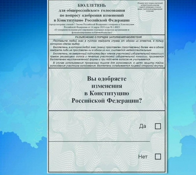 Центральная избирательная комиссия утвердила форму бюллетеня. В нем содержится всего один вопрос «Одобряете ли вы изменения в Конституцию Российской Федерации?» и два варианта ответа — да или нет.