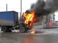 Кабина фуры сгорела полностью