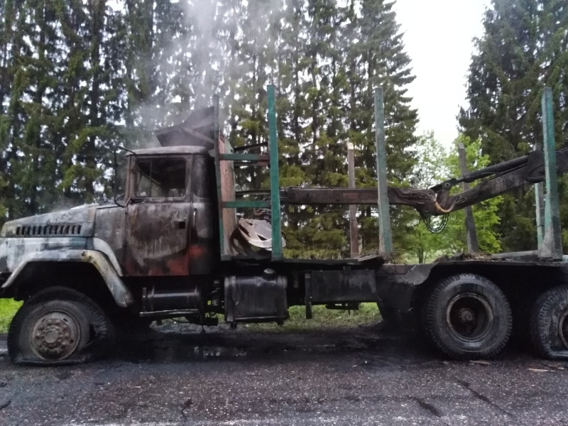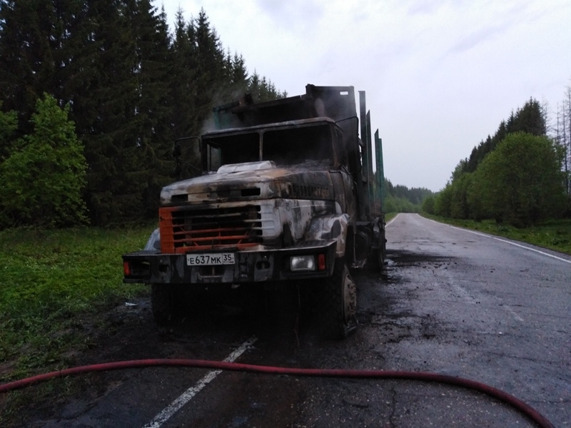 Неизвестные подожгли грузовик на трассе в Бабаевском районе