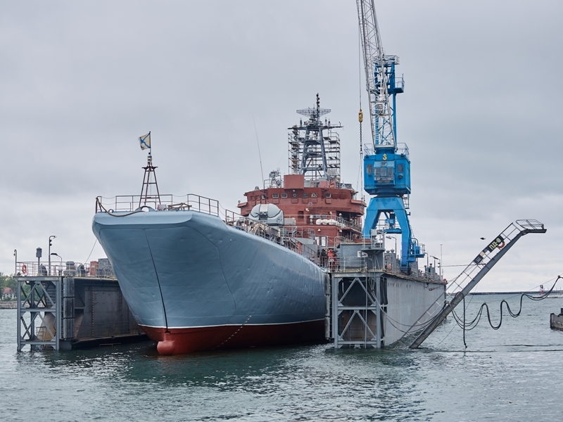 В ходе докового ремонта предприятием досконально отремонтирован корпус корабля, значительный объем клепаного шва, донно-заборная арматура и винто-рулевой комплекс.