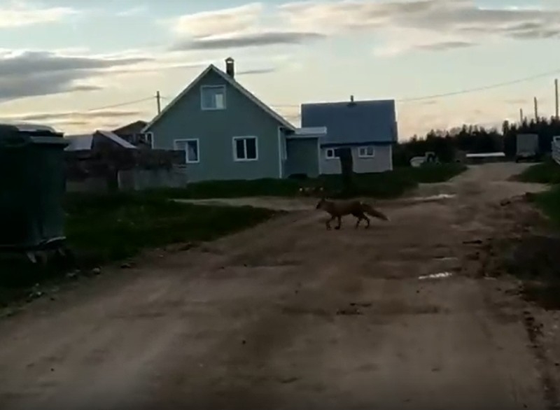 Местные жители уже не первый раз встречают рыжую плутовку недалеко от своих домов. Лиса старается не подходить к людям. Но камеры тоже не боится.