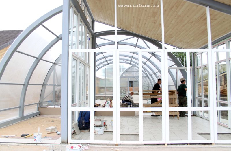 Сейчас пока возведен только корпус будущего строения, однако, по словам Сергея Шкакина, уже ко Дню города здесь откроется целая оранжерея, которую смогут посетить все желающие.