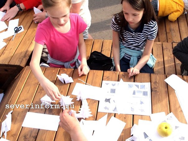 Оригами, музыкой, свечами и киносеансом в областной столице встретили самую короткую ночь года. В пятницу, 22 июня, участники проекта «Активация» таким образом попрощались с летом, сообщает ИА «СеверИнформ – Новости Вологды». Началось все на Каменном мосту. Здесь с 17 часов дети и взрослые делали оригами: птицы, деревья, самолеты. Потом поделки подвешивали на нитки над деревянными скамейками так называемого «Бульвара раскладушек». Получалось своеобразное облако из оригами. В мероприятии приняли участие десятки человек.