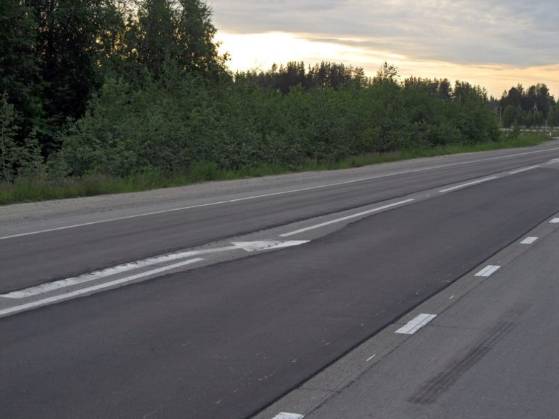 Дорожники Карелии не связывают странный способ укладки асфальта под Петрозаводском с приездом Дмитрия Медведева. Специалисты утверждают, что полотно вокруг разметки стелят по всей республики.