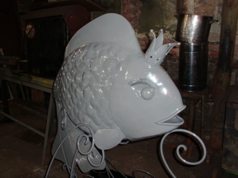 Пятый год подряд мастера кузнечного цеха колонии № 3, расположенной в Великом Устюге, изготавливают для резиденции Деда Мороза кованые изделия. Из раскаленной кузницы колонии «родились» на свет Баба Яга, Черный кот, Колобок и Муха-Цокотуха. Теперь компания сказочных персонажей пополнилась Золотой рыбкой.
