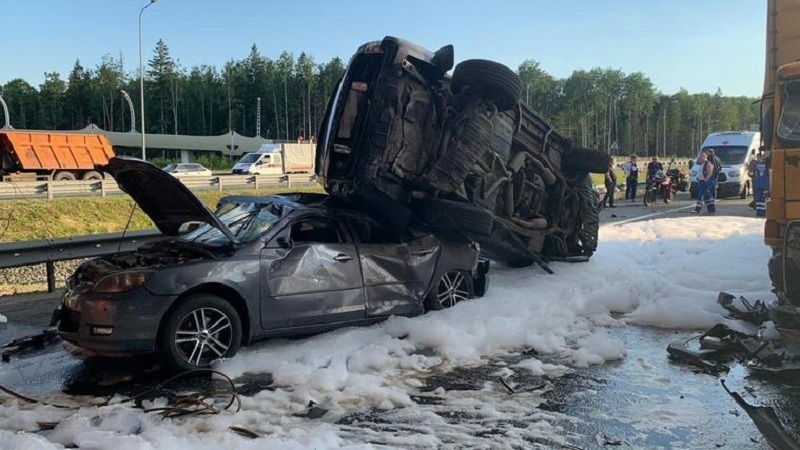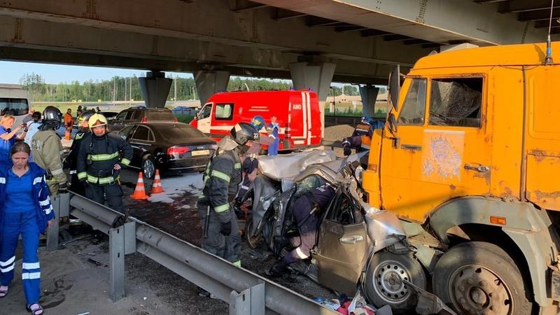 На Кольцевой автодороге Петербурга столкнулись восемь машин