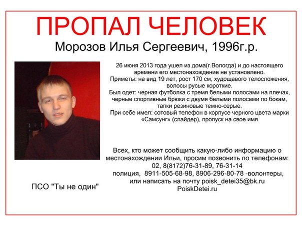 Пропавшего подростка почти месяц ищут в Вологде. 17-летний Илья Морозов ушел из дома еще 26-го июня. С тех пор его