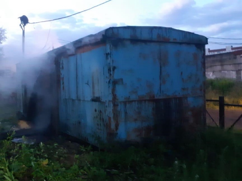 Вызов поступил около 2 часов 23 июля на кладбище №3. Там загорелся металлический строительный вагончик.