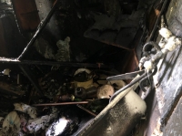 Огонь уничтожил тумбочку гарнитура и мусор, часть квартиры закопчена. 5 человек эвакуировались по лестницам еще до прибытия пожарных. В ликвидации участвовали 15 специалистов и 5 единиц техники.