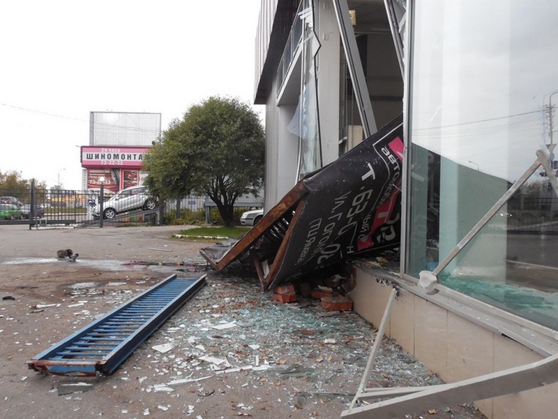 Череповецкий пьяный водитель врезался в здание автосалона. Происшествие случилось 23 сентября в 1:30 на перекрестке Кирилловского и Северного шоссе во время погони.