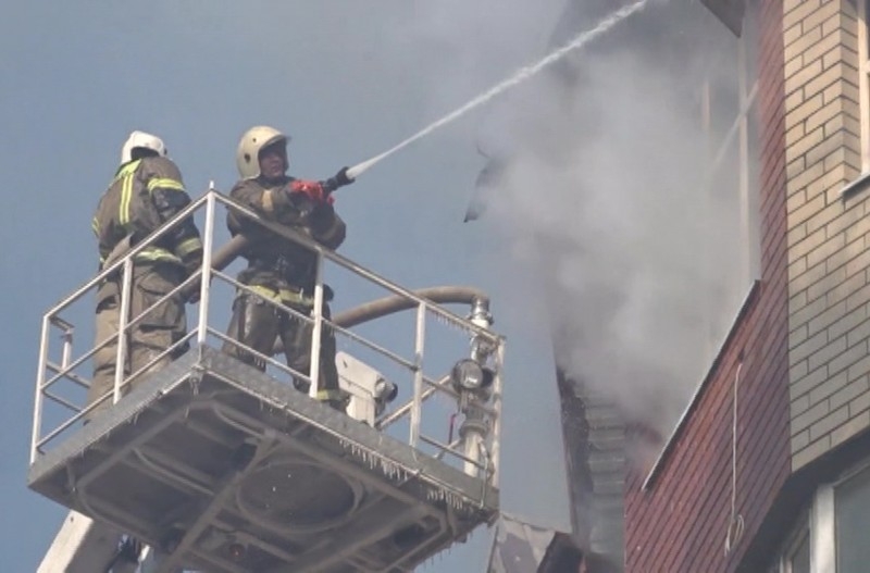 10 взрослых и два ребенка ожидали тушение пламени на улице