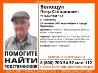 73-летнего мужчину нашли в четверг, 23 сентября. По документам он Петр Степанович Волощук. Возможна потеря памяти. ПСО «Лиза Алерт» просит о помощи в установлении родных пенсионера.