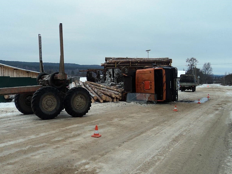 34-летний мужчина, управляя автомобилем «КАМАЗ» с прицепом, при повороте опрокинул транспортное средство на обочину.