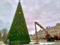 Монтаж проводился в течение нескольких дней на площади Революции. Вместе с самой елью прибыли и украшения для нее: звезды и гирлянда в виде сетки.