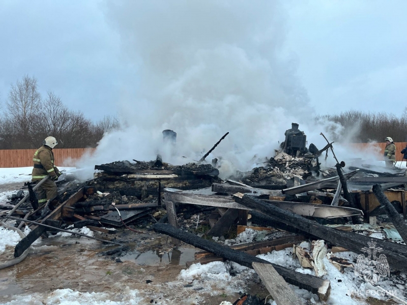 Загорелся строящийся двухэтажный дачный дом площадью 130 квадратных метров. Здание сгорело полностью. На тушение выезжали 11 человек и 5 единиц техники. Трое строителей покинули помещения до приезда пожарных.