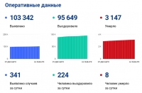 Заразился еще 341 человек. За полторы недели показатель вырос в 3 раза. Общее количество положительных тестов в регионе составило более 103,3 тысячи.