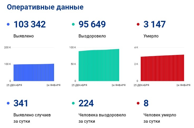 Выздоровели за сутки 224 пациента, всего с начала пандемии – 95,6 тысячи. Сейчас в области занят 51% коечного фонда. Умерли за минувшие сутки 8 человек, всего – 3147 пациентов. Таковы данные на 24 января, опубликованные на портале стопкоронавирус.рф.
