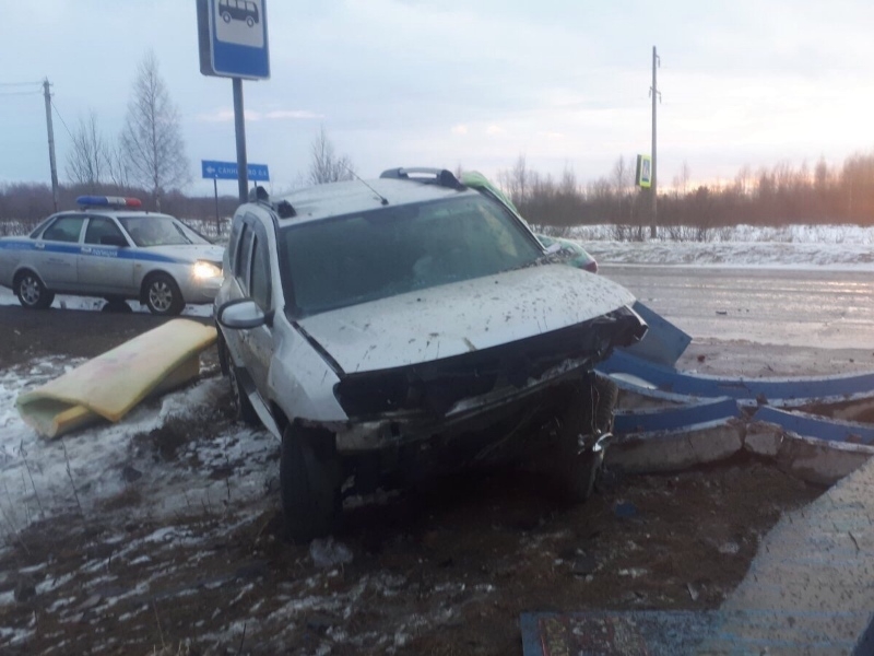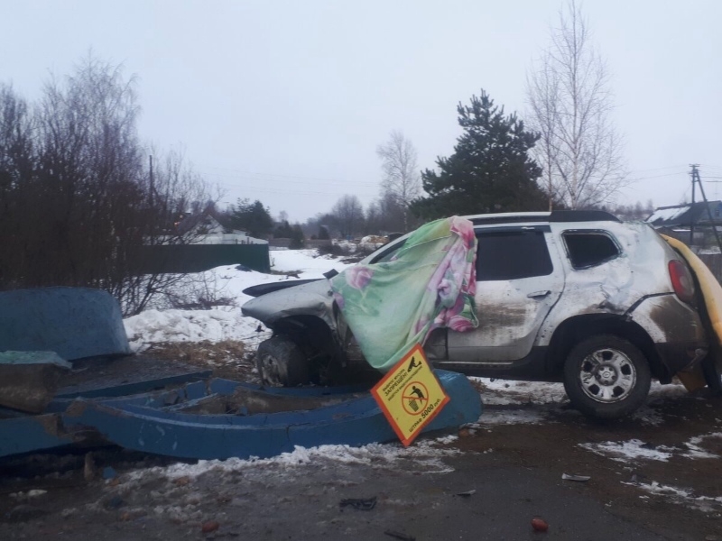 ДТП случилось около 17:30 в воскресенье, 23 февраля. Автомобиль "Рено Дастер" врезался в остановочный комплекс, расположенный на 384 километре дороги "Сергиев Посад - Калязин - Рыбинск - Череповец".