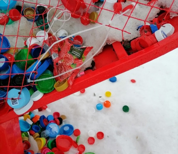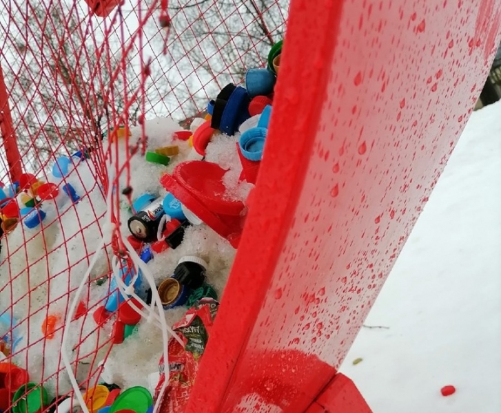 Арт-объект для сбора пластиковых крышек, установленный на площади Чайковского, сильно поврежден.