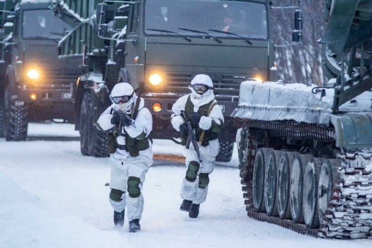 На суше, в Мурманской области морская пехота и мотострелковые соединения продолжают отрабатывают тактику действий в условиях Крайнего севера и Арктики, сообщает ИА «СеверИнформ».