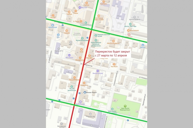 Перекресток Советского и Коммунистов в Череповце перекроют на 2 недели