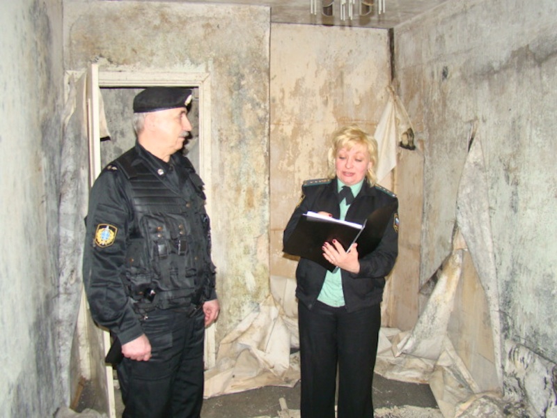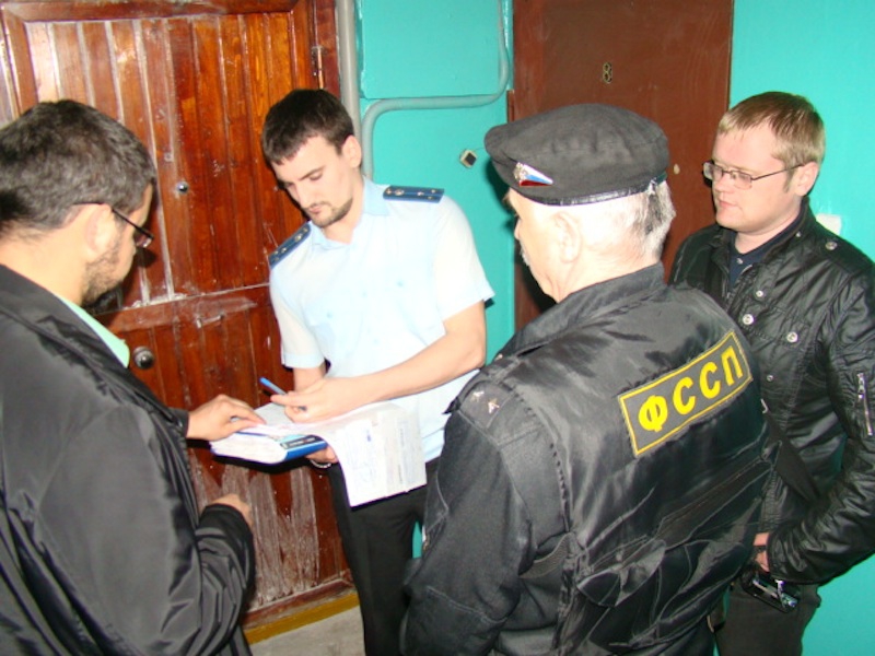 Чтобы попасть в квартиру, приставам пришлось выламывать дверь