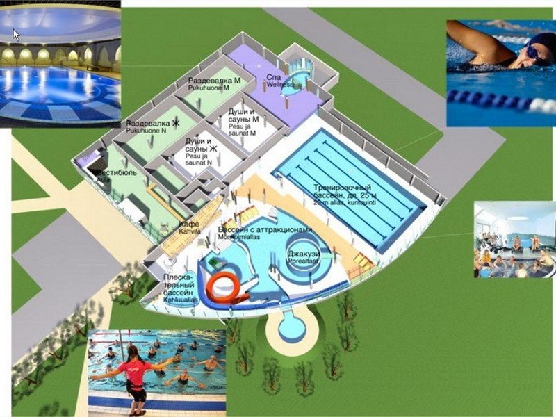 В соответствии с опубликованными там данными, в аквапарке будет семь бассейнов, водяные горки 75 и 40 метров в длину, джакузи, водопады и так называемые «лягушатники» для маленьких детей. В аквапарке будет также несколько баров и кафе, сауны, спа-кабинет, массажные кабинки и стенка для скалолазания. Строить развлекательный комплекс будут за счет частных инвесторов.