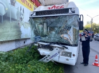 Рейсовый автобус №27 по непонятным причинам выехал на тротуар и буквально протаранил здание. Пешеходов в тот момент не было, но травмирована пассажирка, и получили ссадины трое детей.