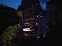 Водитель иномарки опрокинулся в кювет в Вологодской области Фото:АСУНЦ "Вытегра"