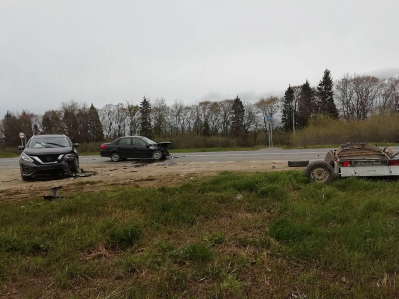 Пострадал один человек. Две легковушки и «Газель» с прицепом столкнулись около 11 часов 23 мая на дороге «Вологда — Ростилово».