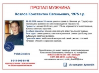 Напомним, Константин Козлов пропал 29 мая. Около 18 часов он ушёл из дома по улице труда в посёлке Шексне и до сегодняшнего дня о нём ничего не было известно.
