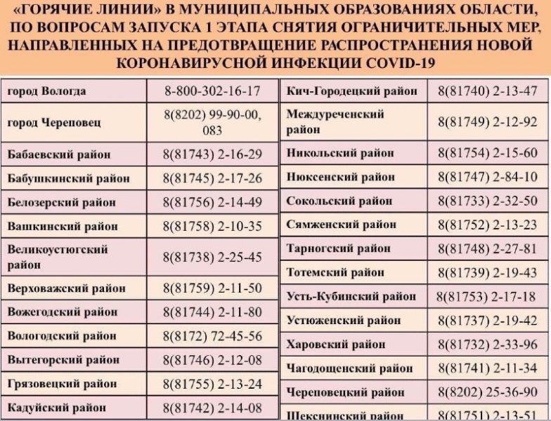 Таким образом, на утро 24 июня в Вологодской области зафиксировано 1 487 подтвержденных случаев коронавирусной инфекции. Новые: 7 – Череповец, 4 – Вологда, 4 – Шекснинский район, и по одному в Вологодском, Тарногском, Грязовецком, Тотемском, Череповецком и Кадуйском районах.