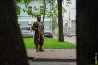 Очередной акт вандализма в отношении памятника произошел ранним утром 24 июня. Юноша с девушкой сначала осматривали скульптуру. Потом дама проверила книгу на подставке на прочность - хулиганка победила.