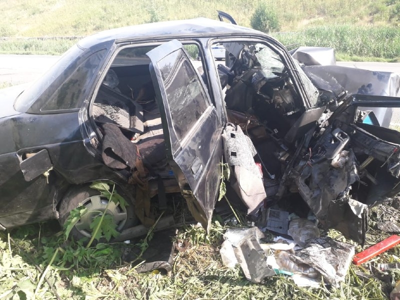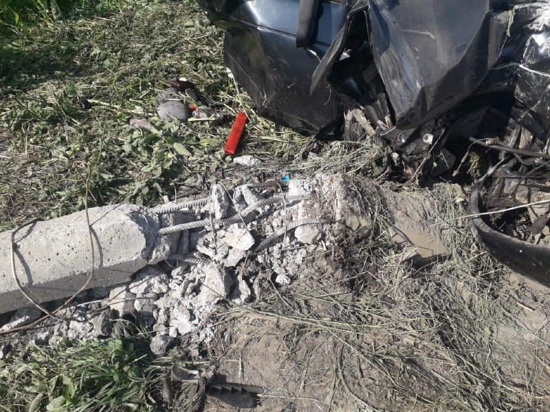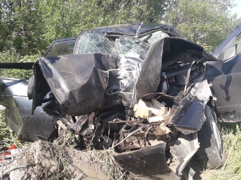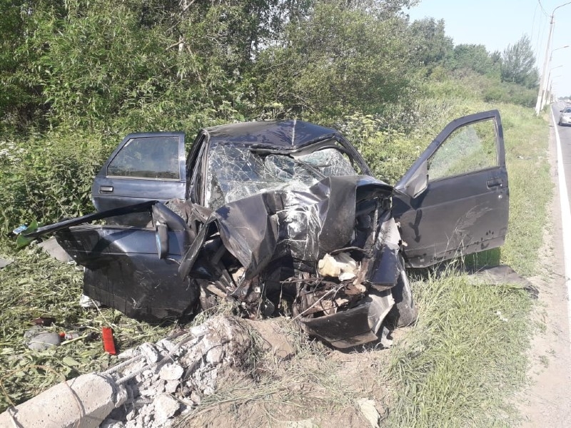 После столкновения ВАЗ врезался в попутку и ударился в столб