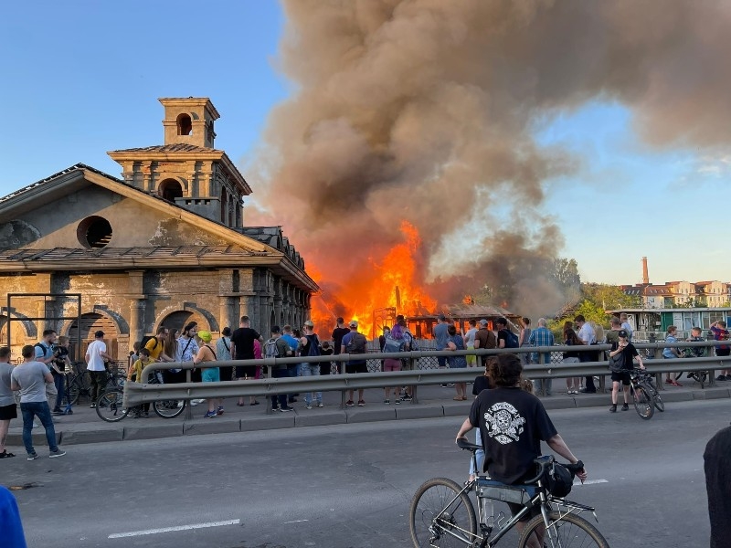 Сегодня около 8 вечера загорелся заброшенный дебаркадер на Советском проспекте, 45.
