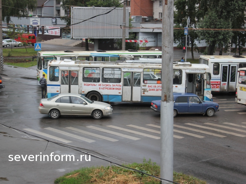 Троллейбус и легковой автомобиль столкнулись в центре Вологды