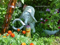 «Сначала Юлия решила оформлять площадку рядом с домом, чтобы здесь не парковали машины, так как свет фар бил ей в окна и не давал спать, - поделилась с корреспондентом ИА «СеверИнформ» соседка девушки. - Она посадила под окнами топинамбур и решила сделать клумбу. Потом Юлия начала делать фигурки из бутылок. Если нужно что-то раскрасить, мы помогаем ей всем домом. Мы начали делать эту композицию около месяца назад. Закончить планируем в августе».