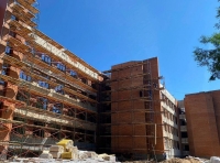 На данный момент идут работы на кровле и фасаде здания. Уже можно увидеть, в каких оттенках он будет. Осталось установить около 50 окон в старшей школе. В начальной школе все окна в кабинетах и коридорах уже поставлены.