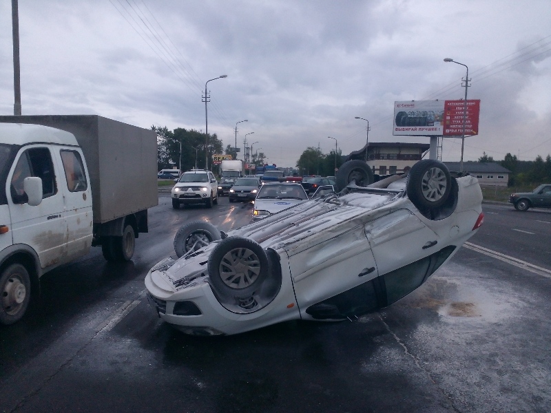 LADA Granta опрокинулась на крышу в Череповце. ДТП случилось 24 августа около 16:30 на Кирилловском шоссе.