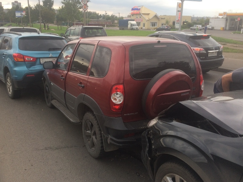 По информации управления ГИБДД, 40-летний водитель автомобиля «Форд Фьюжн», ехавший в сторону Индустриальной части города, при перестроении из одного ряда в другой применил резкое торможение. В результате столкнулись 9 автомобилей, ехавших за Фордом в попутном направлении.