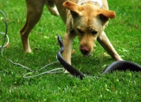 В Вологде в Ковыринском парке домашнюю собаку укусила змея. Об этом случае пишут пользователи социальных сетей, по их информации, инцидент имел место утром вчерашнего дня, 23 августа. Укушенная собака гуляла вместе с хозяйкой, разновидность змеи установить не удалось. Комментаторы новости предположили, что пресмыкающееся могло заползти в парк из расположенного неподалеку торфяника.