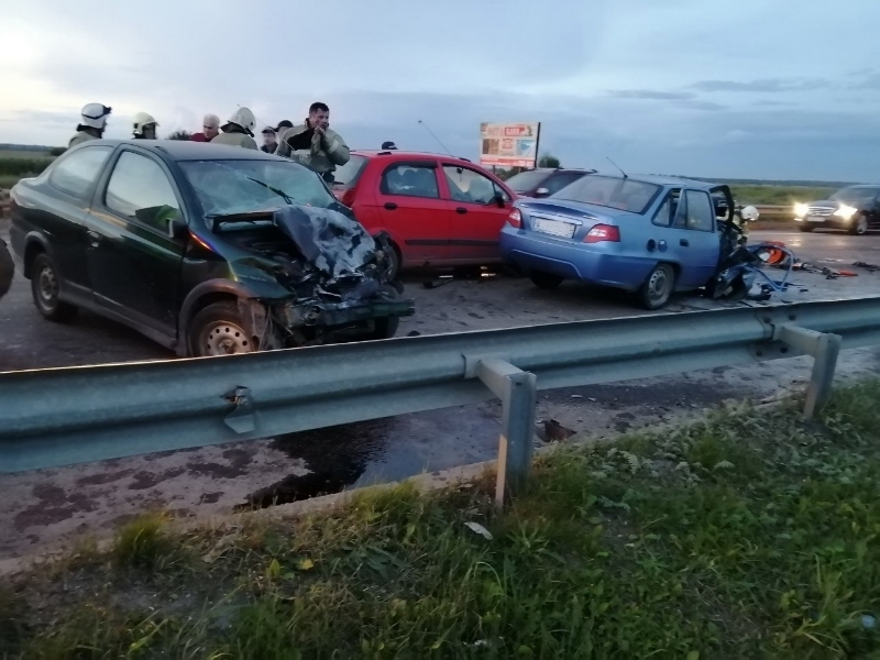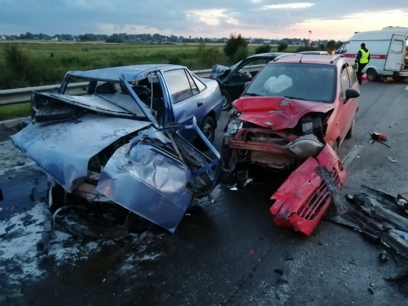 По предварительной информации регионального УМВД России, 30-летний мужчина ехал на "Ладе Калине" с прицепом в сторону трассы М8 "Холмогоры". Машина пошла на обгон, и прицеп занесло. Груз выпал на проезжую часть. На него наехала "Нексия" под управлением 31-летнего мужчины. Автомобиль двигался во встречном направлении. "Дэу" откинуло на встречную полосу, где легковушка врезалась в "Тойоту" и "Шевроле".