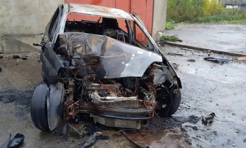 Иномарка в Череповце вспыхнула после наезда на столб Фото:ОГИБДД