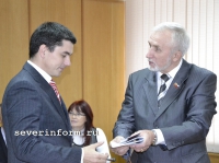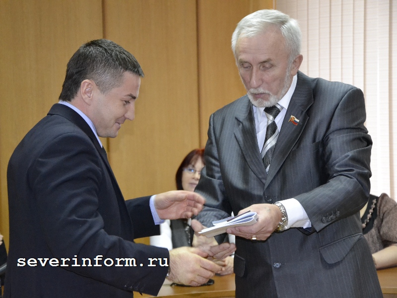 Игорь Степанов вручает удостоверение Николаю Ханкову