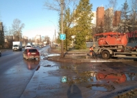 Коммунальщики устраняют последствия аварии на перекрестке Ленинградской — Петина