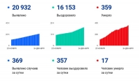 По данным на утро сегодняшнего дня в Вологодской области заболело 369 человек. При этом выздоровело 357.