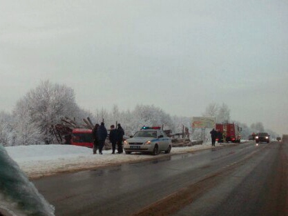 По словам очевидцев, оба грузовика вылетели в кювет. Легковушка получила значительные повреждения.