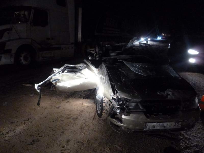 Daewoo Nexia врезалась в стоящий на обочине большегруз Volvo